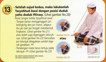 13. – Setelah sujud kedua, maka lakukanlah tasyahhud Awal dengan posisi duduk yaitu duduk Iftirasy.