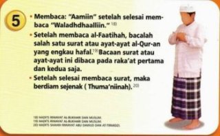 • Setelah membaca al-Faatihah, bacalah salah satu surat atau ayat-ayat al-Qur’an yang engkau hafal. [19] Bacaan surat atau ayat-ayat ini dibaca pada rakaat pertama dan kedua saja.