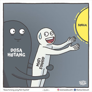 Dari Abu Qatadah radhiyallahu ‘anhu bahwasanya Rasulullah ﷺ pernah berdiri di tengah-tengah para sahabat, lalu beliau mengingatkan mereka bahwa jihad di jalan Allah & iman kepada-Nya adalah amalan yang paling afdhol. Kemudian berdirilah seorang sahabat lalu bertanya, “Ya Rasulullah, bagaimana pendapatmu jika aku gugur di jalan Allah, apakah dosa-dosaku akan terhapus?” Maka jawab Rasulullah ﷺ, “Ya, jika engkau gugur di jalan Allah dalam keadaan sabar serta mengharapkan pahala, maju & pantang melarikan diri”. Kemudian Rasulullah ﷺ melanjutkan, “Kecuali hutang, karena sesungguhnya Jibril menyampaikan hal itu kepadaku”