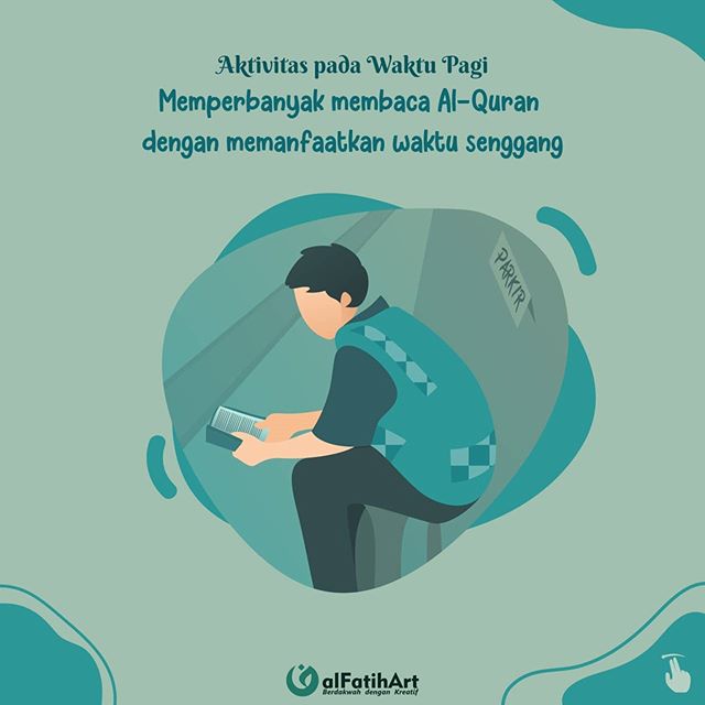 Aktivitas pada Waktu Pagi: Memperbanyak membaca Al-Quran dengan memanfaatkan waktu senggang seperti saat berada dalam antrian panjang dan istirahat kerja
